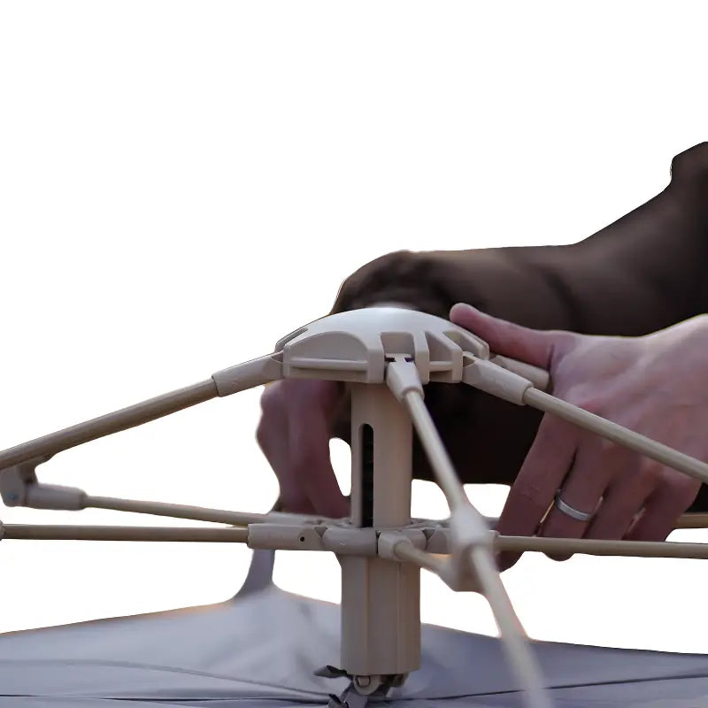• Montaggio istantaneo: Sistema autobloccante brevettato. Tiri e si apre. Punto e basta.