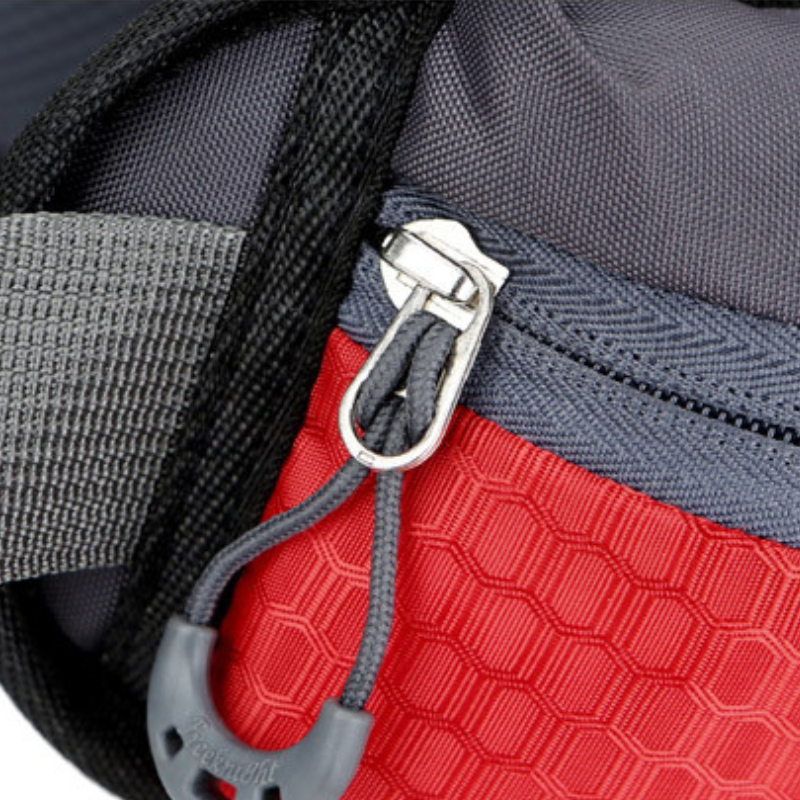 • 8 tasche totali con cinghie di compressione: Tasca superiore, frontale con zip, 2 laterali mesh espandibili e 2 su cintura per trekking, alpinismo e campeggio